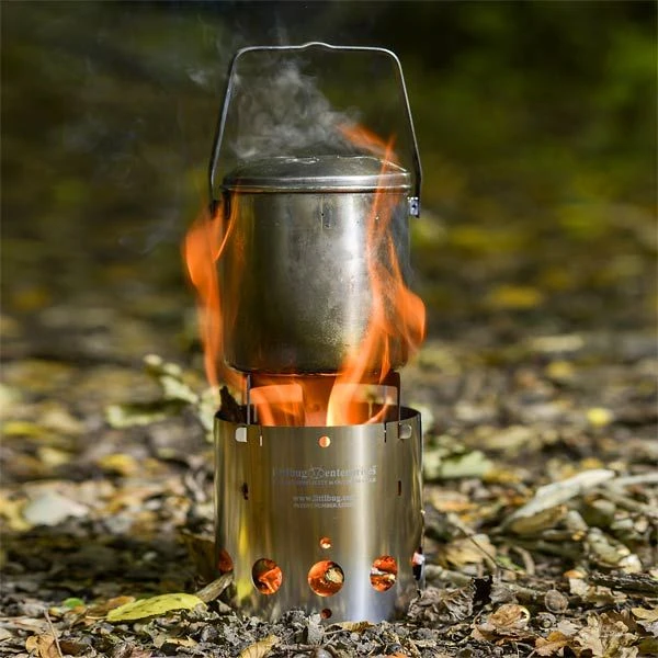 Ray’s personal preference is to use the Littlbug Junior Stove in conjunction with the Zebra 12 cm Billy Can and Trangia Spirit Burner. When the internal dish of the Billy Can is removed, it can comfortably house both the Littlbug Stove and the Esbit Alcohol Burner inside, resulting in an extremely compact and lightweight solo cooking set.