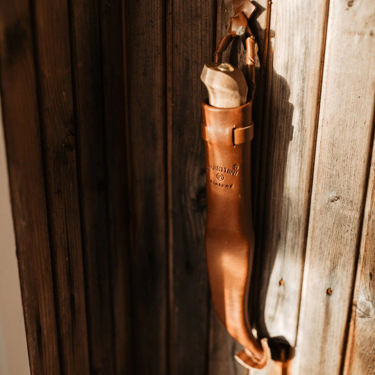 The handle of this knife is made from stained birch. Its surface is slightly textured so you easily get a firm, safe grip of the knife.